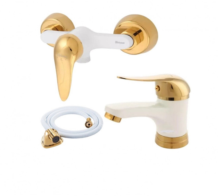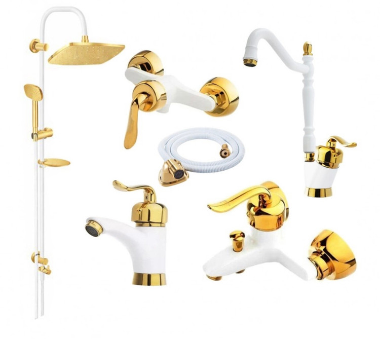 ست شش عددی شیر آلات سفید طلایی مدل قاجاری به همراه علم دوش دوکاره